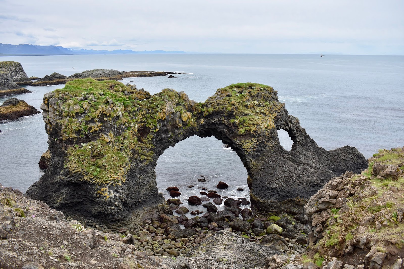 After you’ve had your fill of beautiful beach and rock photos, travel forward to Saxholl Crater (an active volcano that you can climb up!) Get ready for your thighs to burn if you choose to hike up all those steps! The view on the top is definitely worth it though! Hellnar and Arnarstapi were some of our favorite stops along this southern part of the peninsula. Again, the rock formations are worth seeing.